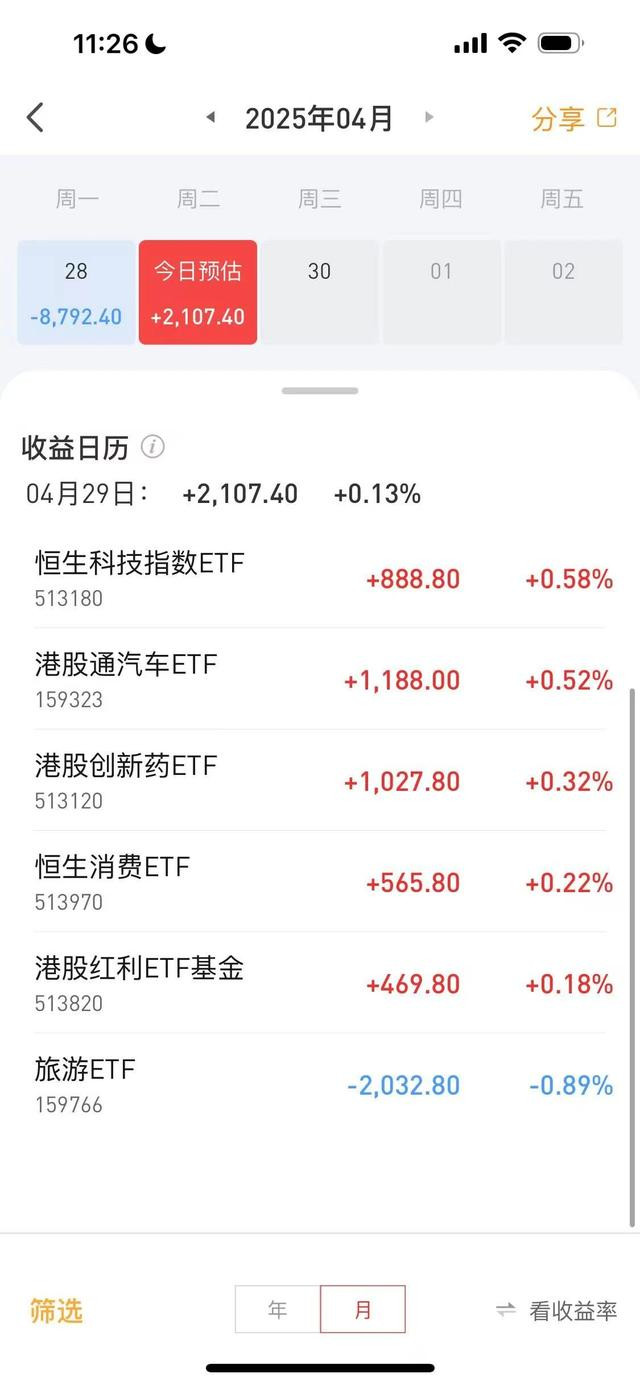 成分股扭亏这应该算是好事了,况且马上就五一长假了,本觉得旅游应该涨的但是没有涨,太令人失望了,思来想去旅游ETF拿到节后再说吧,说不定领导说要发旅游消费券了。